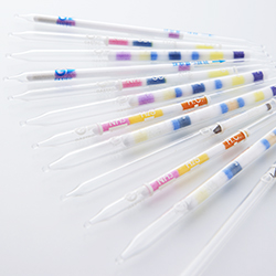 To measure, simply immerse the detector tube in a sample of liquid (placed in a beaker or other container). Anyone can measure concentrations quickly, easily and accurately on site.